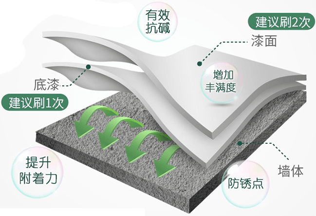 從(cong)底到(dao)面,底層堅固,面層靓麗防水透氣(qi),防黴抗堿,