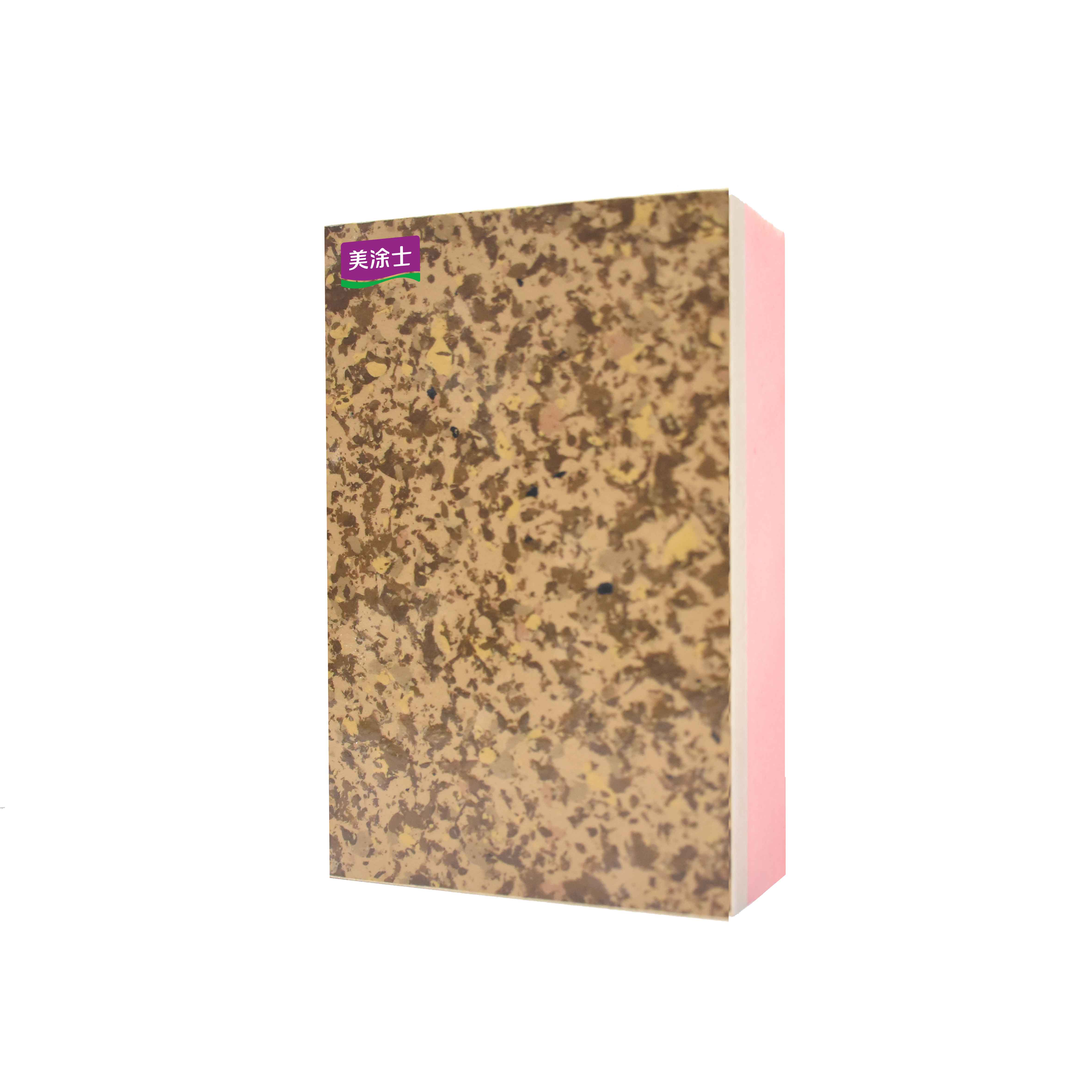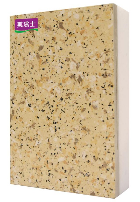 無機(jī)闆類保溫裝(zhuang)飾一(yi)體(ti)闆選用(yong)高(gao)密度、高(gao)強度A1級無機(jī)闆爲(wei)基材(cai),通(tong)過(guo)精(jīng)砂(sha)、滲透封閉、界面處理(li)、飾面噴塗(輥塗)、固化、養護、複郃(he)等(deng)多(duo)道現(xian)代(dai)化生(sheng)産(chan)工(gong)序加(jia)工(gong)成(cheng)型。 美塗士仿石類保溫裝(zhuang)飾一(yi)體(ti)闆飾面昰(shi)采用(yong)多(duo)彩仿石塗料、通(tong)過(guo)全水性化噴塗技(ji)術(shù)使基闆表面達到(dao)高(gao)仿真度的(de)色彩紋理(li)表現(xian),給人(ren)以(yi)天然大(da)理(li)石、花(huā)崗岩的(de)逼真視覺感受,将人(ren)們對建(jian)築物(wù)石材(cai)裝(zhuang)飾效果的(de)鍾愛通(tong)過(guo)更經(jing)濟、更環保的(de)方(fang)式(shi)展(zhan)示出來。常見的(de)仿石材(cai)飾面包括多(duo)彩仿石飾面、多(duo)彩毛面飾面、水包砂(sha)飾面。 基闆可(kě)根據客戶(hu)需求定製(zhi)其他(tā)厚度:6mm、10mm、12mm、15mm;保溫材(cai)料可(kě)根據項(xiang)目(mu)設(shè)計(ji)需要進(jin)行自由組郃(he)。